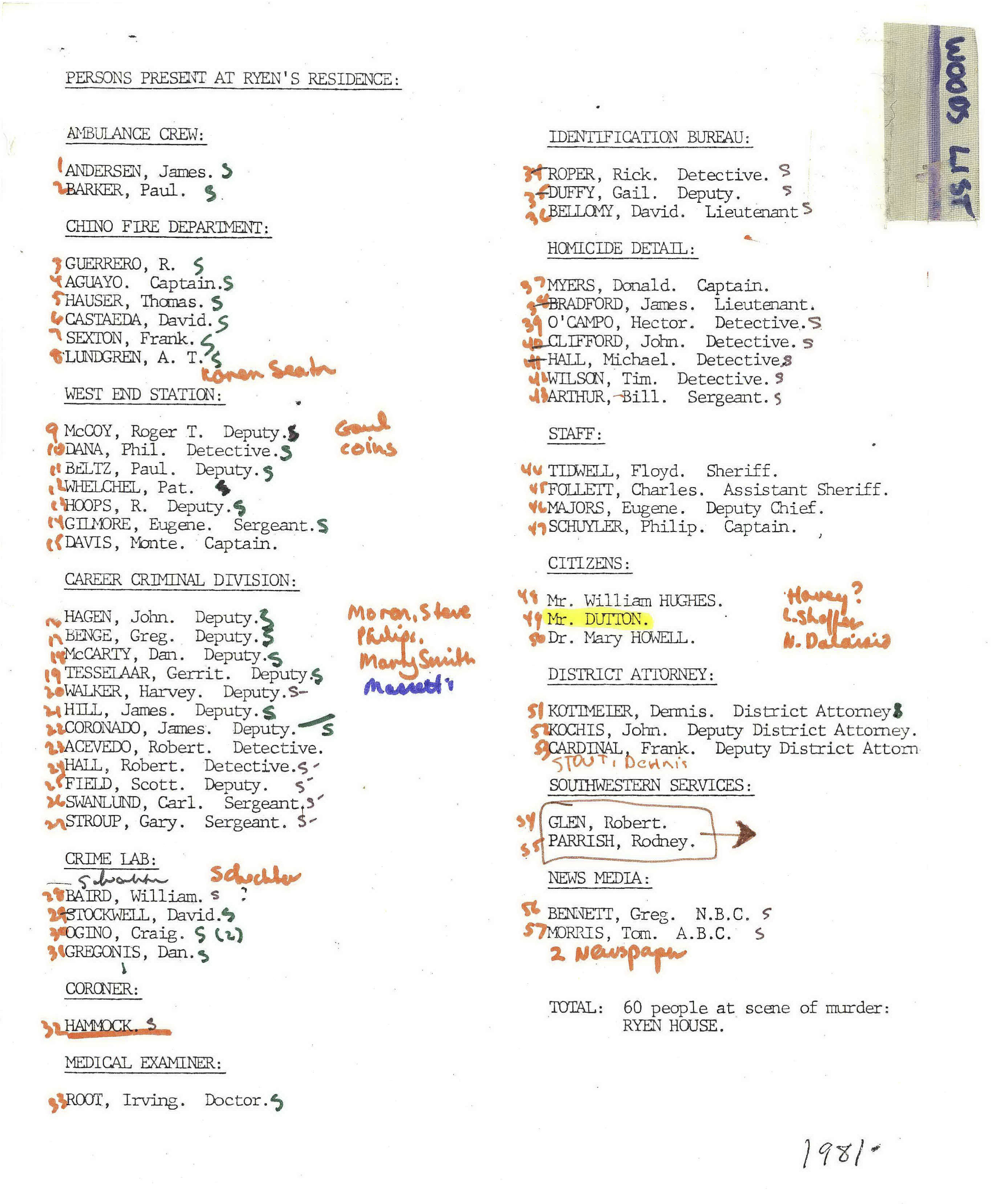 - 60 people would be allowed at the murder scene over the next two days – with up to 14 detectives in the Ryen’s bedroom at the same time.