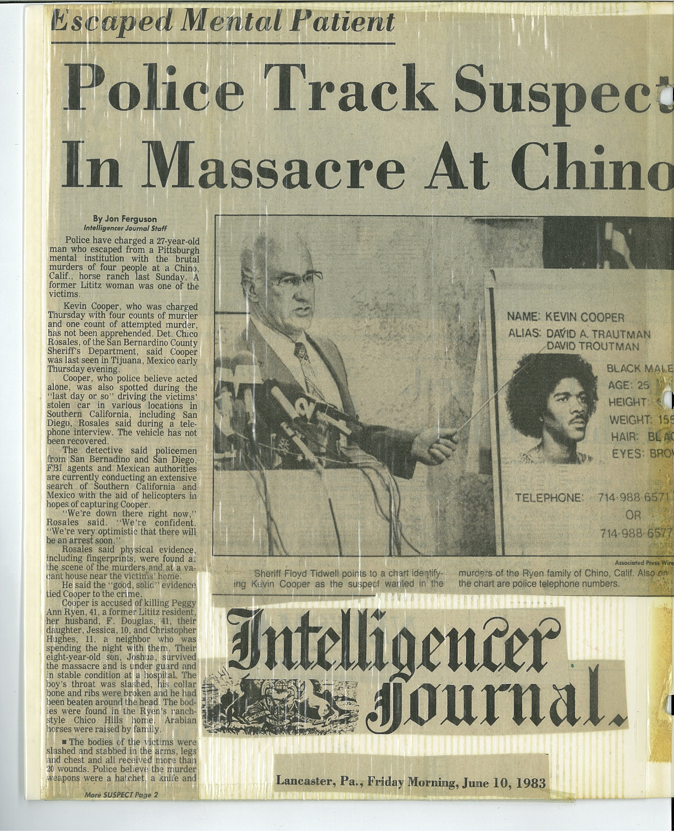 - Sheriff Tidwell holds a press conference to announce that Kevin Cooper had been charged with four counts of murder and one count of attempted murder. He told reporters that there is proof Cooper was at the scene of the murders and “At this time we believe he is the only one involved.”